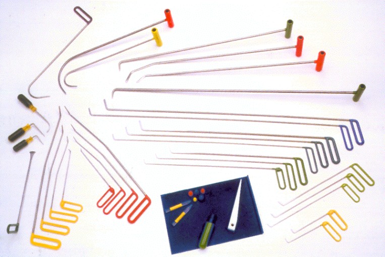 - Einhandbedienung ermöglicht unterstützende Hammerschläge auf den Dellenrand,